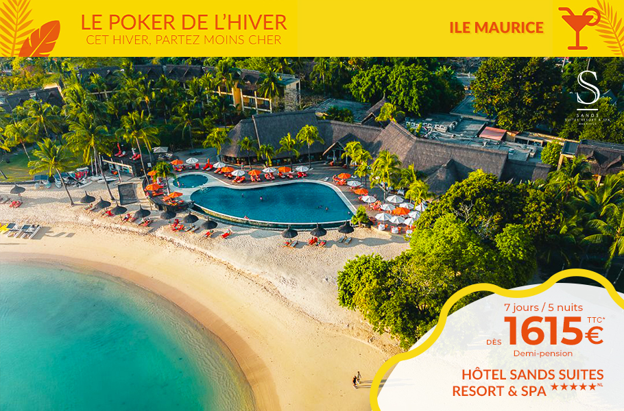 Tahiti & ses îles dans le Pacifique. La Guadeloupe, Martinique, République Dominicaine et St Barth, le Mexique avec Cancun & la Riviera Maya dans les Caraïbes, la Jamaïque et Sainte-Lucie. L’Ile Maurice, la Réunion, les Seychelles, les Maldives, le Sri Lanka, Dubaï dans l'Océan Indien, sans oublier une halte à Zanzibar. Découvrez les plus grandes chaînes hôtelières dont Sandals, Palladium, Bahia Principe...