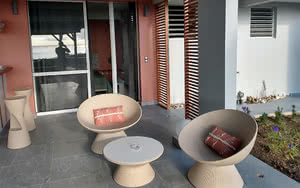 La suite Junior se compose d'une chambre principale climatisée, d'une autre partie chambre en mezzanine, ainsi qu'un coin cuisine entièrement équipé sur une très agréable terrasse donnant sur notre jardin.