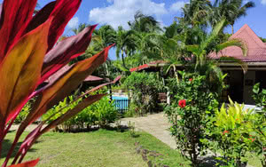 Dans la Villa Hibiscus se trouve un appartement exclusif de 160m2: à l’intérieur une cuisine complètement équipée, un grand salon donnant sur la terrasse, une chambre parentale avec salle de bain, une chambre double, une deuxième salle de bain et une chambre avec un lit simple, une buanderie. Dans le jardin devant la terrasse une piscine privée (5x10) avec un carbet donnant sur l'exubérante végétation tropicale.